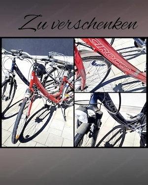 2 ausgemustert Fahrräder gegen Selbstabholung zu verschenken in Höchst. Etwas handwerkliches Geschick ist erforderlich für je einen Reifenwechsel, ein paar Tropfen Öl und eine Schraube müsste bei einem Vorderlicht angezogen werden;-)