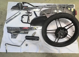 Verkaufe einen Satz originaler Ersatzteile für eine Puch Maxi N (Baujahr ca. 1980er Jahre). Die Teile stammen aus einer Demontage und sind größtenteils vollständig und gut erhalten. Enthalten sind u. a.: - Hinterrad mit Kettenrad - Chrom-Seitenverkleidungen - Gepäckträger - Schutzblech hinten ...