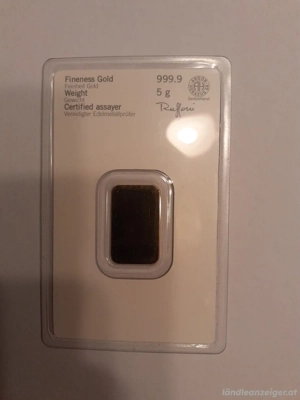 Biete hier einen Goldbarren 5g im Original Blister mit Zertifikat an.