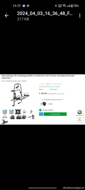 Heck- Fahrradträger, für BMW 1er F20. Siehe Fotos, sicher auch für andere Modelle, muss probiert oder abgeklärt werden. 1x gebraucht.