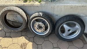 2 Sommer Reifen auf Alu-Felgen, für Yamaha Neos Roller inkl. 1 Reserve Reifen, ohne Felge. -> Nur Selbstabholung!