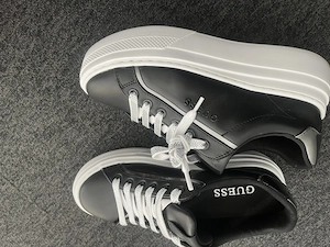 Schwarze Sneaker von Guess im Originalkarton und zusätzlichen weißen Schnürsenkel