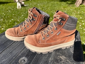 Diese Damenstiefelette aus braunem Gore-tex Veloursleder wurde kaum getragen und ist fast wie neu. Sie kann das ganze Jahr getragen werden. Größe 37.