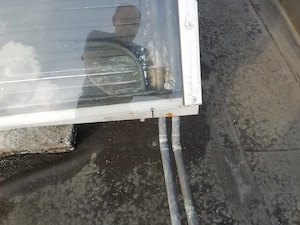 Der Grossflächen Kollektor mit einem Doma Absorber ist 5.47 m breit und 1.32 m hoch. Der Anschluss ist 22 mm Kupfer. Er ist dicht und funktioniert einwandfrei. Ich gebe ihn kostenlos her mit samt den 3 Konsolen auf den Beton Standfüssen. Aber möglichst schnell da statt ihm, die PV Anlage bald kommt. ...