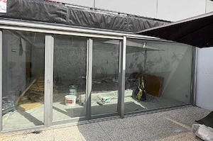 Verglasung mit Schienensystem abzugeben. Vorhanden sind 7 kurze Schiebefenster und ein großes, genaue Maße gerne auf Anfrage.