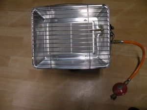 Ideales Gerät für Marktstände mit 4 KW Leistung. Der Strahler wird direkt auf die Gasflasche montiert.