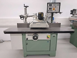 Tischfräse mit Aigner Fräsanschlag, neuem SCM 4 Rollen Vorschub, Digitale Höhenverstellung, Digitale Schwenkung von -5 bis +45 , massiver großer gefräster Tisch aus einem Guss, sehr gepflegt, wenig gebraucht. Vorgänger der Martin Tischfräse