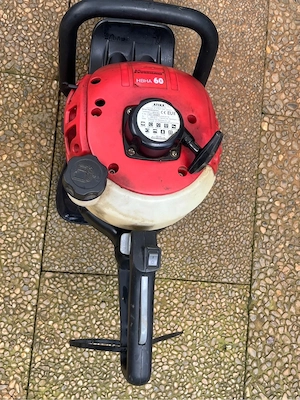 Die Heckenschere funktioniert einwandfrei, ist ein Benzinmodell der Marke HBHA 60 und stammt aus dem Baujahr 2012.