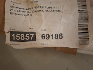 Metallverbundrohr 26x3.0. mm weiß Ringbund a 50m - war beim Hausbau zu viel daher ist es übrig. Neu wir haben 2 Bündel übrig, kann auch nur ein Bündel gekauft werden. - ein Bündel 100 - beide 180
