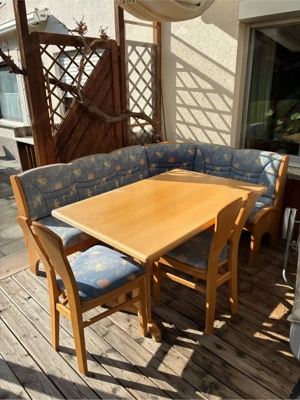Eckbank mit Tisch und 2 Stühlen