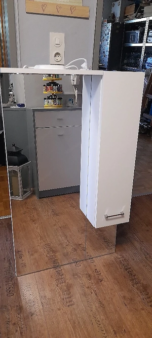 Verkaufe meinen Spiegelschrank mit Beleuchtung und Stauraum im sehr guten Zustand. Maße 104.5 0.60 cm