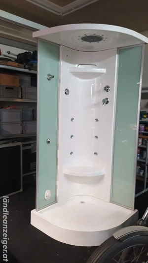 Superschöne Duschkabine zu verkaufen aber ohne Glasschiebetüren! (gibt es beim Obi) Seitliche Glaspanele bereits vormontiert, 900 x 900 x 2120 mm, 230V mit Feuchtraum FI im Anschlusskabel integriert. Top Zustand, mit Dampfaggregat, Dampfdüsen, Digital Panel für Funktionsauswahl, Massagedüsen, Regenhimmel, ...