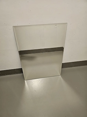 Rechteckige Spiegel im Format 30 x 42,5 cm, Rückseite weiß foliert. Abholung im Kunstraum Dornbirn.