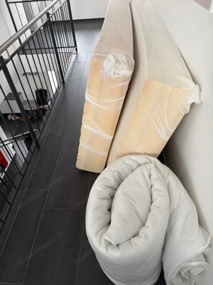 Verkaufe Neues Bett und Latterrost ohne Matratze 140+ 200 cm Das Bett ist zerlegt man sicht es bei dem Bild... Bitte gleich melden