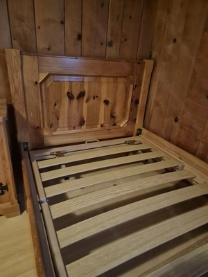 Bettgestell wie auf dem Foto ersichtlich zu verschenken. Ideal für Dekozwecke.