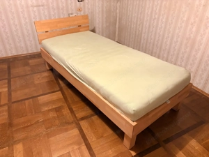 Verkaufe mein sehr schönes gepflegtes Bett. Als Gästebett oder Jugend sehr gut geeignet. Verkaufe das Bett mit Matratze und Lattenrost zusammen. Matratze sehr gepflegt hatte immer einen Schoner darauf. (das Bett ist bereits abgebaut und ganz leicht aufzubauen.)