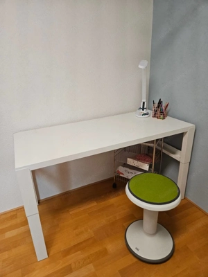 Halbes Jahr alt Wir verwenden nun einen Schwenkarm füt den Bildschirm, daher wird es nicht mehr gebraucht. Material: weißes Metall, Schublade aus Bambus Abzuholen in Hohenems 2 Stk. vorhanden