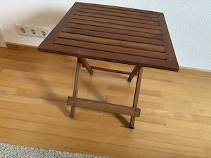 85x85cm aus Metall eine Strebe hält nicht mehr (siehe zweites Bild) Tisch steht trotzdem.
