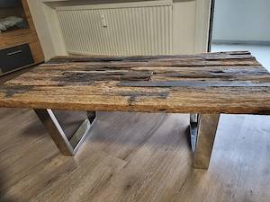 Designer Wohnzimmertisch aus alten Eisenbahnschwellen! Sehr schwer! Einzelstück um 450,- zu verkaufen. Neupreis lag bei 1200,- Maße: b=70cm l=130cm h=45cm