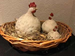 Vintage-Style, große Henne 18 cm, mittlere 12 cm, kleine 9 cm, Korb 35 cm