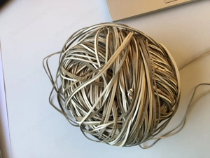 Großes Knäuel mit verschieden farbigen Lederschnüren, Durchmesser Knäuel, ca 17 cm. Zum verzieren von zB Vasen, Geschenken,Basteln usw.