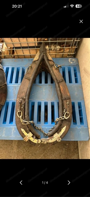 Antikes Pferde-Kummet mit Messingbeschlägen rustikale Deko Historisches Pferde-Kummet, gebraucht, komplett Verkaufe ein originales, altes Pferde-Kummet mit vermessingten Metallteilen. Gebraucht mit altersbedingten Gebrauchsspuren, siehe Fotos. Leder ist alt, aber vollständig, Metallteile vorhanden. Ideal ...