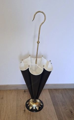 französischen Schirmständer in Form eines geschlossenen Regenschirms, ein beliebtes Design-Objekt aus der Mid-Century-Ära (ca. 1950er oder 1960er Jahre)  Design: Das verspielte Design ist typisch für die Nachkriegszeit, in der funktionale Gegenstände oft eine humorvolle, gegenständliche Form erhielten  Materialien: Diese ...