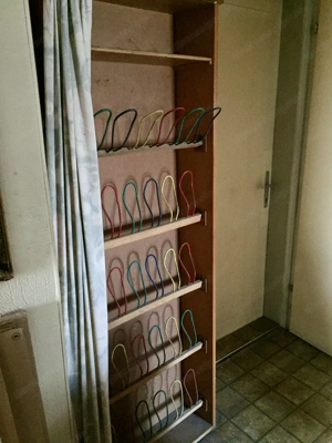 70 Jahre Schuhregal aus holz abzugeben die einzelnen Reihen sind nach vorne schwenkbar. Das Teil wird auf Grund einer Hausauflösung abgegeben.