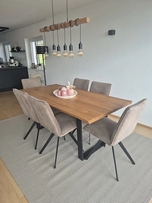 Tisch Eiche massiv B H T 180 76 90 inkl. 6 Stühle in der Farbe Cappuccino.