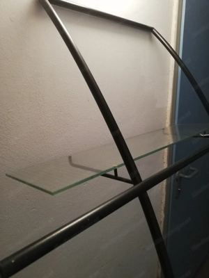Gesamtbreite 100 cm, die Glasplatte hat 80 cm, Gesamthöhe ca 180 cm, wegen Umzug abzugeben