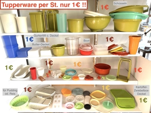 Tupperware aus Haushaltsauflösung. Die Teile wurden grob gereinigt. Gurkerllift Behälter, Gurkerllift, Siebschüssel, Schüssel, Dosen, Butterbehälter-Deckel, Reiben - Hobel für die grünen Schüsseln, Deckel für Zwiebelbox Kartoffelbox. allerhand andere Deckel und Zubehörteile. Jeder Stück nur 1 Euro. Bitte ...