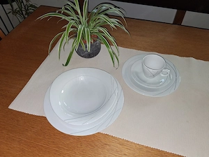 Zeitlos elegantes Tafelgeschirr! Bestehend aus: 12Stk. Speiseteller, 12Stk. Suppenteller, 10Stk. Dessertteller,10Stk. Kaffeetassen, 10Stk. Kaffeeuntertassen.