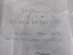 Staubbeutel für Vorwerk - Staubsauger VK 135 135, 1 x 6 Stk. Original verpackt, kompl. 11 Beutel, alle zusammen für 22,- Euro abzugeben,