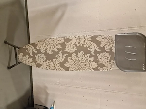 Verkaufe ein stabiles Bügelbrett mit schöner gemusterter Auflage. Es ist höhenverstellbar und hat eine große Ablagefläche für das Bügeleisen.