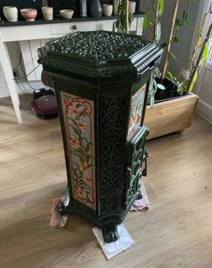 Ich verkaufe diesen Holzofen der Marke Godin in sehr gutem funktionsfähigem Zustand. Produkttyp: Holzofen Marke: Godin Material: grün emailliertes Gusseisen Dekorative Motive: stilisierte Blumen Ausstattung: wird mit den grün emaillierten Ofenrohren verkauft Zögern Sie nicht, mich für weitere ...