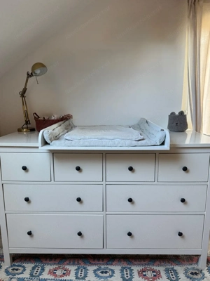 Hemnes Kommode weiß mit 8 Schubladen 160 x 96 cm Kann als Wickelkommode genutzt werden - Aufsatz von Puckdaddy vorhanden. NP: 339 + 72 (Wickelaufsatz) VP: 200 Kleine Gebrauchspuren beim Wickelaufsatz.