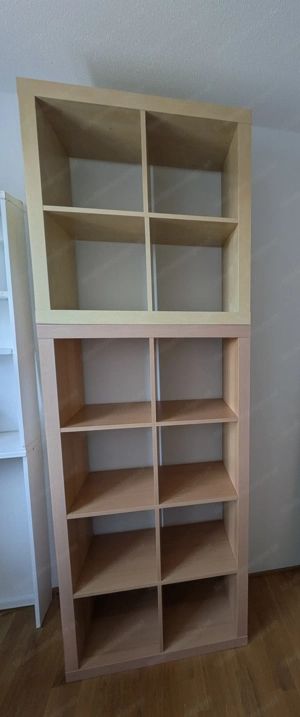 1x IKEA Regal Kallax 4x2 um 30,- 1x IKEA Regal Kallax 2x2 um 15,- Oder beide zusammen um 40,- Im Design Eiche.