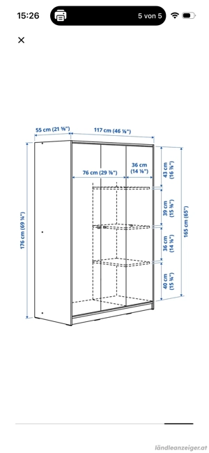 Verkaufe zwei gleiche Ikea Kleiderschränke in gutem Zustand (Gebrauchsspuren vorhanden). Maße und Details auf den Bildern. Je Schrank 40 , beide zusammen für 70 . Selbstabbau und Selbstabholung in Hard.