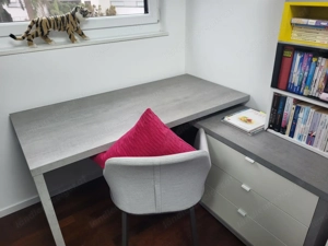 Verkaufe einen mitwachsenden Schreibtisch für Kinder und Erwachsene da höhenverstellbar, massiv und robust, Tischplatte stufenlos höhenverstellbar, Tischplatte stufenlos in der Neigung verstellbar (siehe Bild 4), Vollholz, inkl. Rollcontainer mit 3 Schubladen Maße Länge 130cm, Tiefe 76cm, Höhe von ...