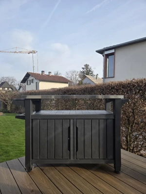 Verkaufe einen Keter Unity XL Grilltisch mit Edelstahl-Arbeitsplatte (134 52 90 cm). Perfekt als Vorbereitungstisch beim Grillen oder als praktische Outdoor-Arbeitsfläche für Terrasse oder Balkon. Der Tisch ist voll funktionsfähig und in gutem gebrauchten Zustand mit leichten Gebrauchsspuren. Bietet ...
