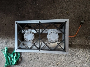 Doppelgashocker mit 2 Flammen und massivem Edelstahlgestell. Gastro-Qualität Voll funktionsfähig - Abgabe aufgrund fehlendes Verwendungszwecks