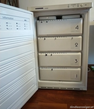 Liebherr Gefrierschrank mit 4 Schubladen zu verkaufen. Größe BHT: 55 86 66 cm. Zwei große Kühlakkus können oben eingelegt werden. Gerät ist sauber und funktioniert. Privatverkauf ohne Gewähr. Kein Umtausch oder Rückgabe. Kein Versand.