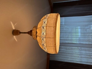 Hängelampen 2 Stk. Lampenschirm ist mit Stoff überzogen. Maße: H 62 cm x B 48 cm aus Fichte. Pro Lampe 5 Euro