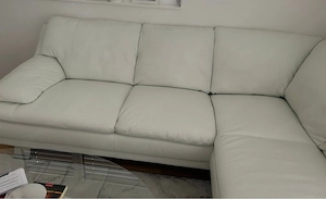 Verlauft wird eine sehr gut erhaltene Sitzgarnitur aus weißen Leder. Maße 240 x 220 cm