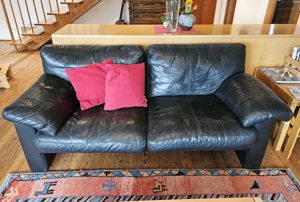 Wir verkaufen unsere gebrauchte, sehr gepflegte Polstergruppe, Marke Volare. Sofa 3-sitzig, 268 x 76 x 95 cm und Hockerbank, 150 x 45 x 40 cm. Bezug Leder, schwarz, Metalluntergestell. Nichtraucherhaushalt. Keine Tiere.
