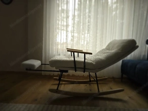 Wir haben zwei Stück bestellt, benötigen aber nur einen daher verkaufen wir einen Relax- Schaukelstuhl inklusive Fußhocker. Modernes, zeitloses Design Heller, weicher Stoffbezug Stabile Holz-Kufen Schwarzes Metallgestell Inkl. passendem Fußteil Der Neupreis lag höher hier deutlich günstiger ...