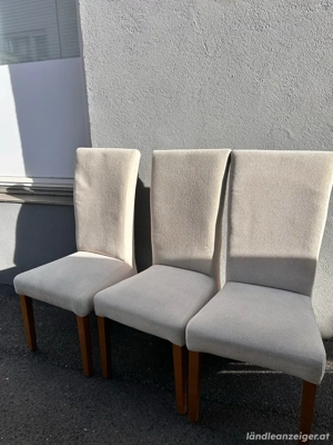 3 Stück massive und gepolsterte Stühle, Füße aus Eichenholz, Stoff wurde nass mit Polstersauger gereinigt. Sehr guter Zustand - Pro Stück 10 EUR