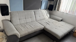 7 Jahre alte Couch abzugeben. Breite ca. 2,8 m Tiefe ca. 1,5 m Kann als Doppelbett ausgezogen werden und bietet viel Stauraum unter der Sitzfläche. Kopfstützen sind verstellbar. Stoff ist leicht abgenutzt, letztes Foto zeigt links den Stoff des Betteils und rechts den Stoff des Couchteils als Vergleich. Abzuholen ...