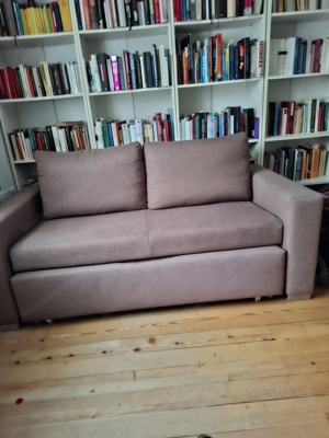 verkaufe Sofa, ausziehbar zum 140 bett. Kaum benutzt, da sie nur im büro steht. Länge 170, mit integriertem lattenrost.