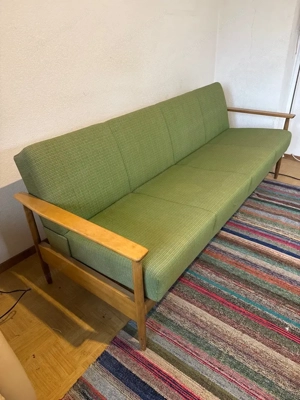Couch zu verschenken Gebrauchsspuren sichtbar Große Couch mit Holzrahmen und grünem Stoffbezug gratis abzugeben. Die Couch ist stabil und voll funktionsfähig, Gebrauchsspuren sind sichtbar (siehe Foto), daher ideal z. B. für Keller, Ferienwohnung, Hobbyraum oder als Übergangslösung. Details: - ...